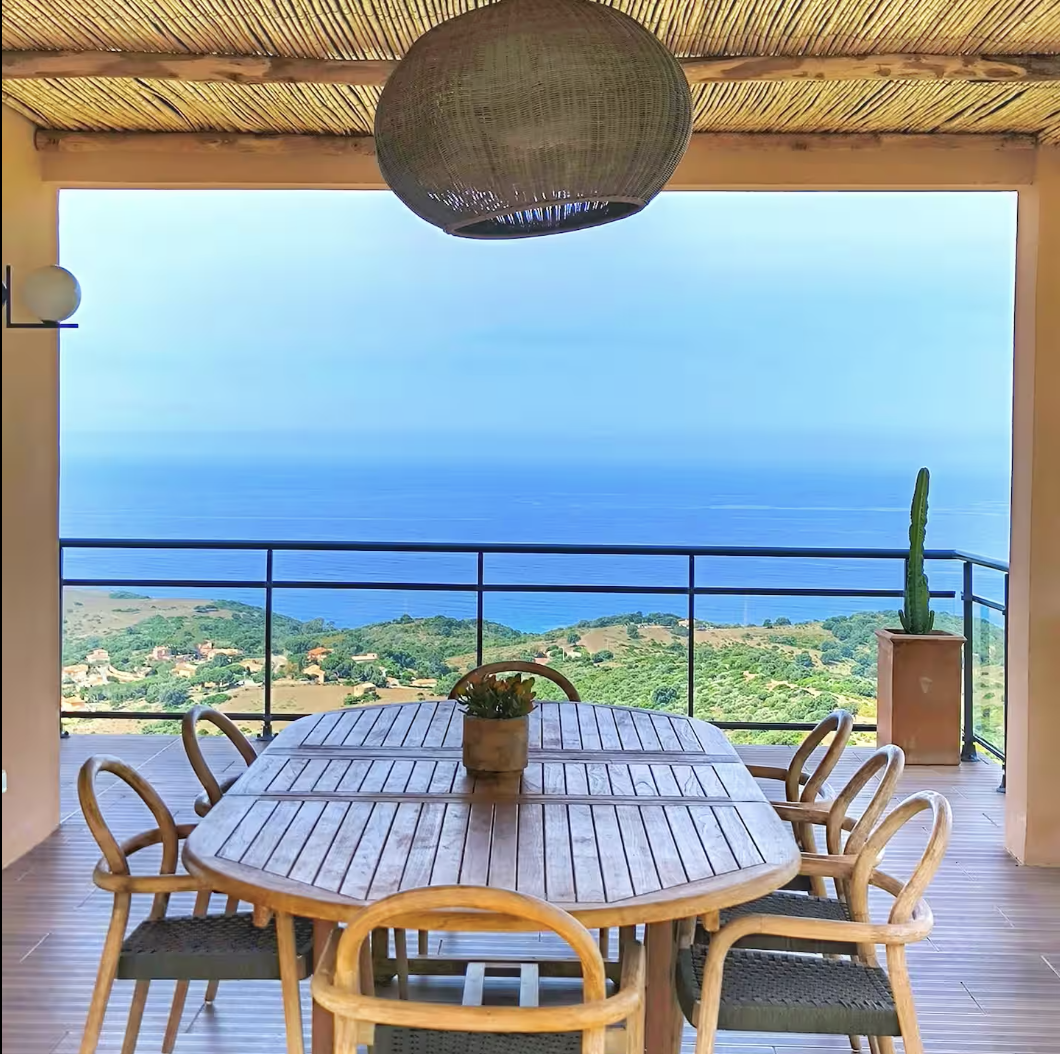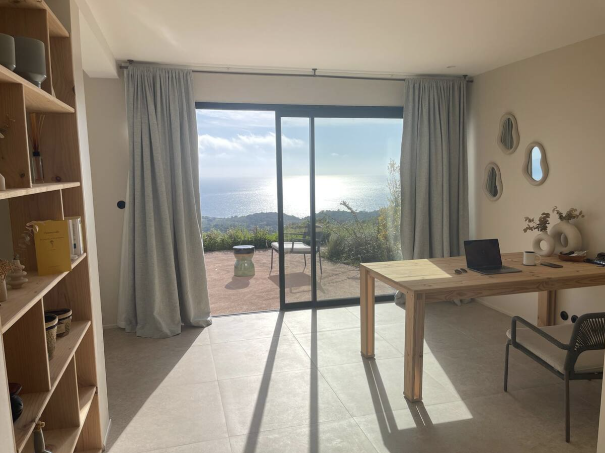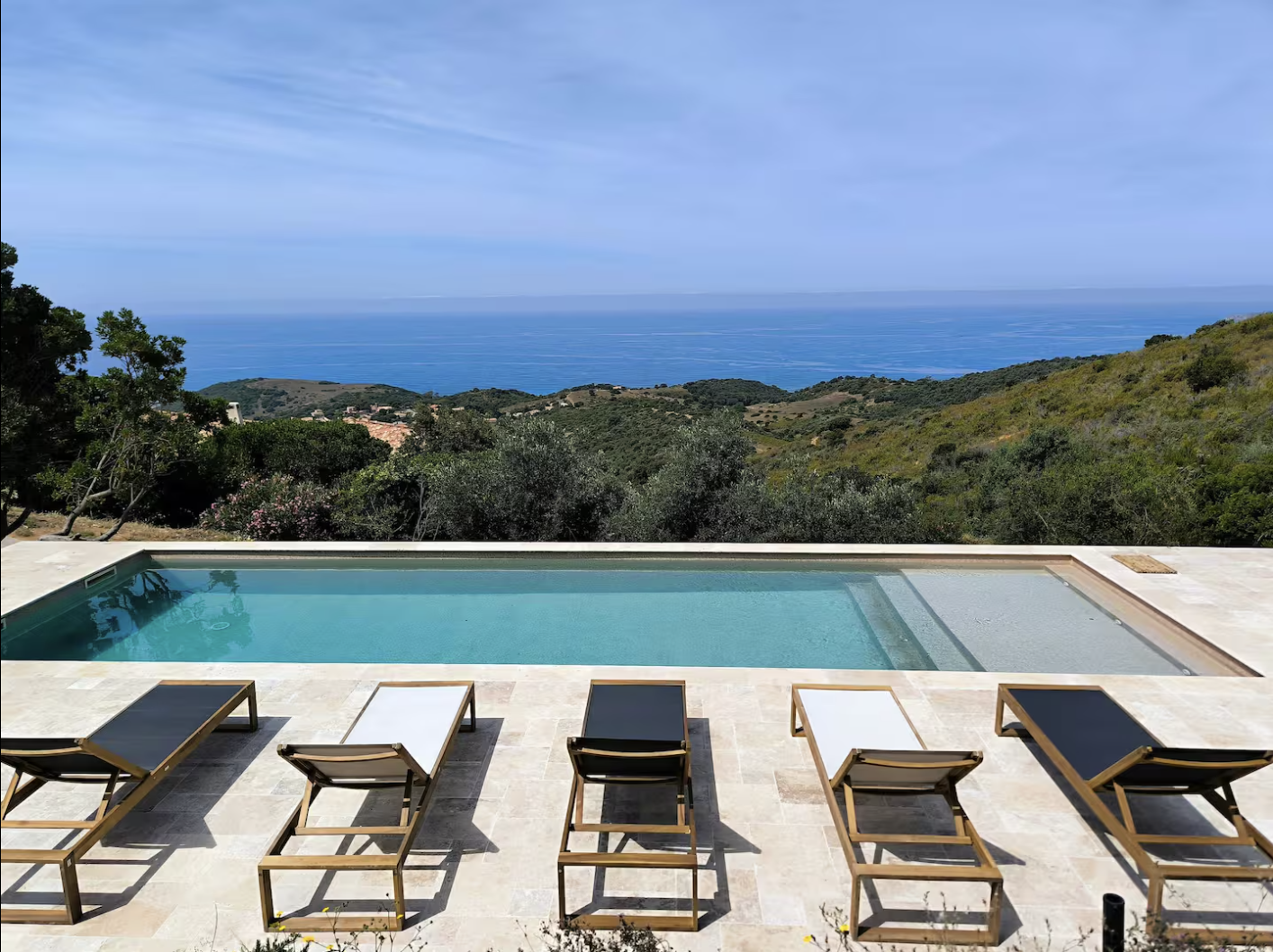 La piscine à débordement de 11 x 3,5 m, bordée par le parfum du maquis, invite à la détente à toute heure. Une plancha électrique est à disposition pour prolonger les soirées d’été sous les étoiles. La maison est entièrement climatisée, dispose d’un espace de travail dédié, accepte les animaux sur demande, et offre tout le matériel pour accueillir les plus petits.