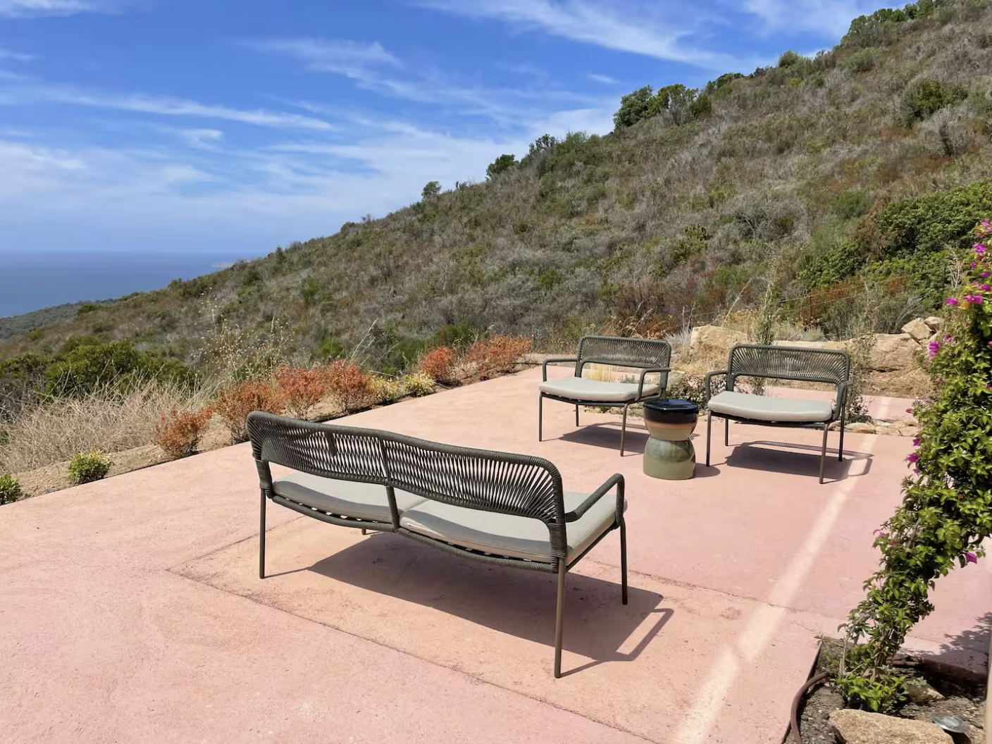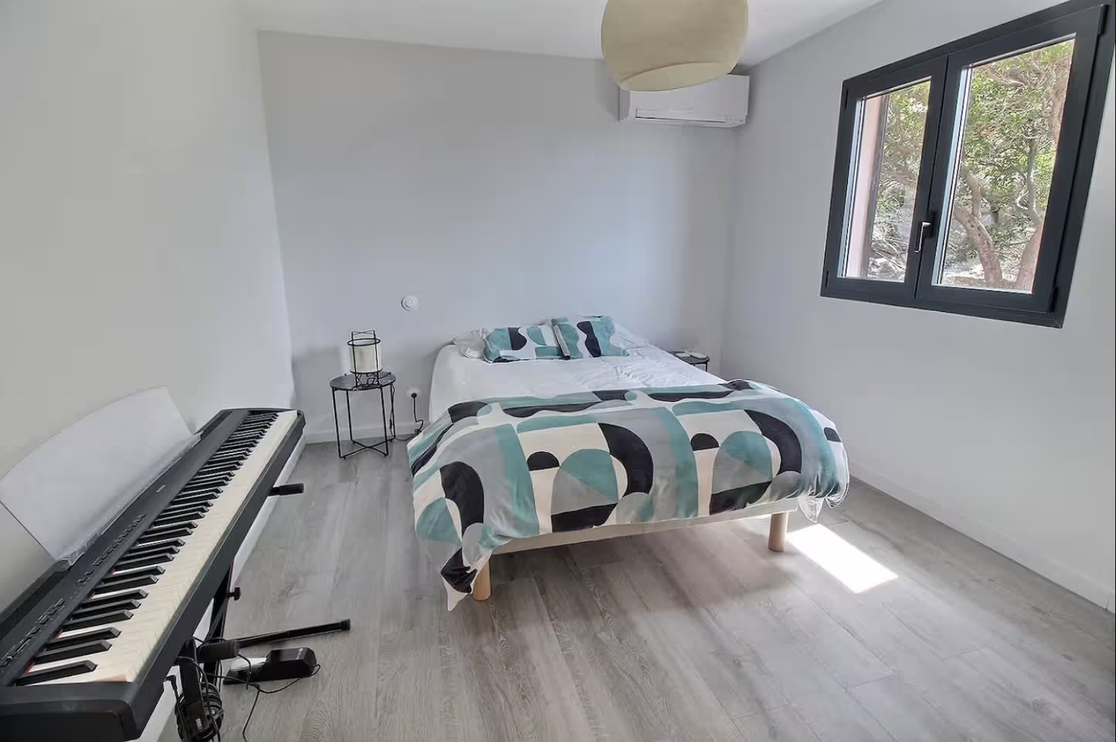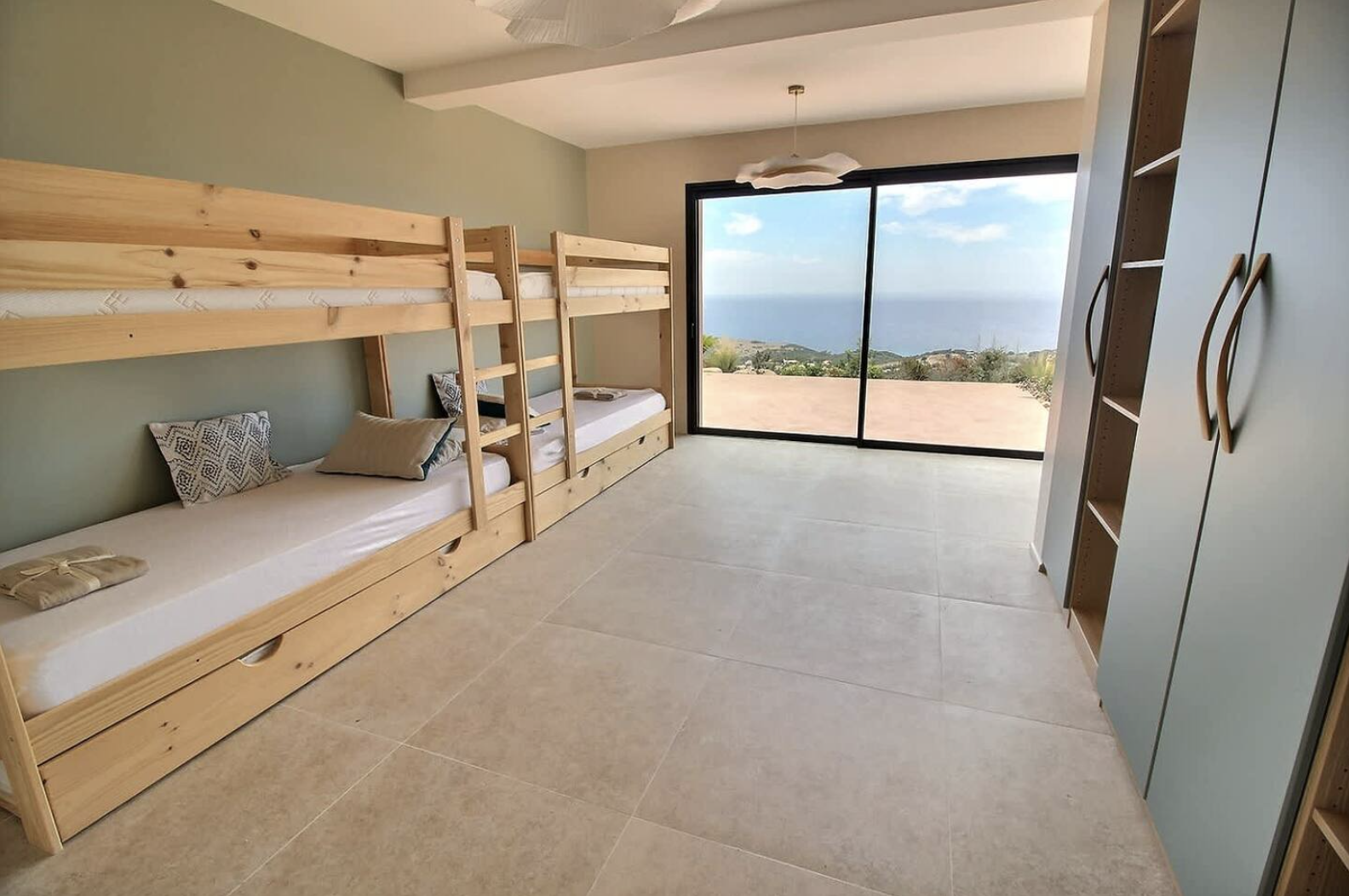 La piscine à débordement de 11 x 3,5 m, bordée par le parfum du maquis, invite à la détente à toute heure. Une plancha électrique est à disposition pour prolonger les soirées d’été sous les étoiles. La maison est entièrement climatisée, dispose d’un espace de travail dédié, accepte les animaux sur demande, et offre tout le matériel pour accueillir les plus petits.